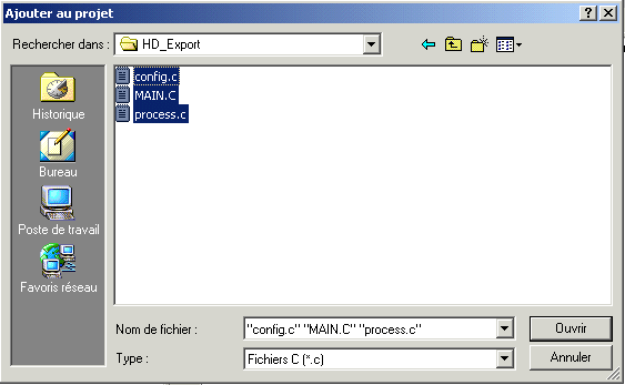 les fichiers 'config.c','main.c',process.c' dans le répertoire