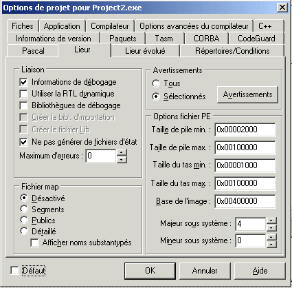 Attention il semble qu'un bug de Borland C Builder, oblige à