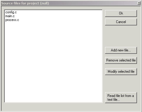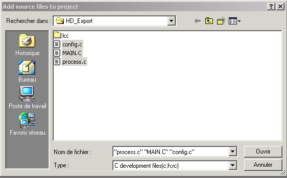 - Ajouter les 3 fichiers config.c, main.c, process.c (sélectionner