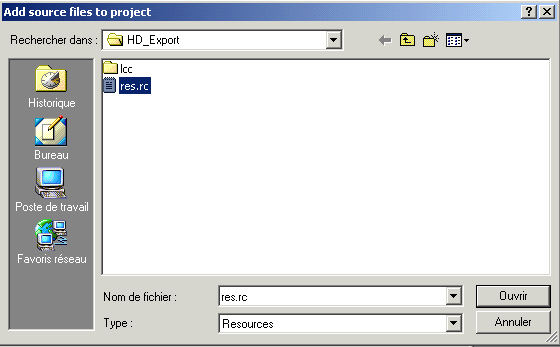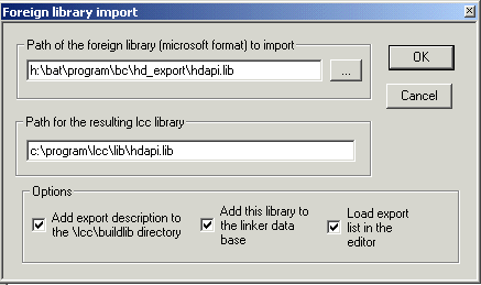 la librairie à importer : 'hdapi.lib' et cocher 'add this