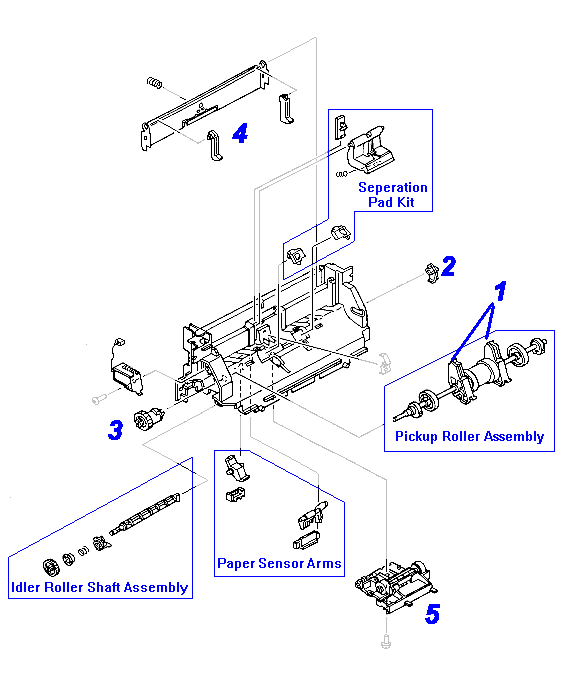 Retirer ce petit clip. L'axe va se dégager (Pickup Roller Assembly).