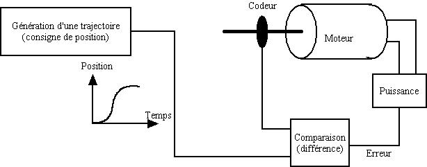 Principe de l'asservissement Ainsi, plus la différence entre la position de consigne et la position réelle augmente, plus l'erreur augmente. Donc plus la commande vers le moteur augmente et plus celui-ci va avoir tendance à diminuer cette erreur.