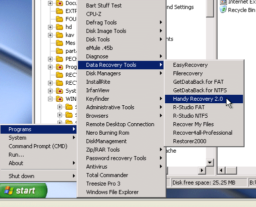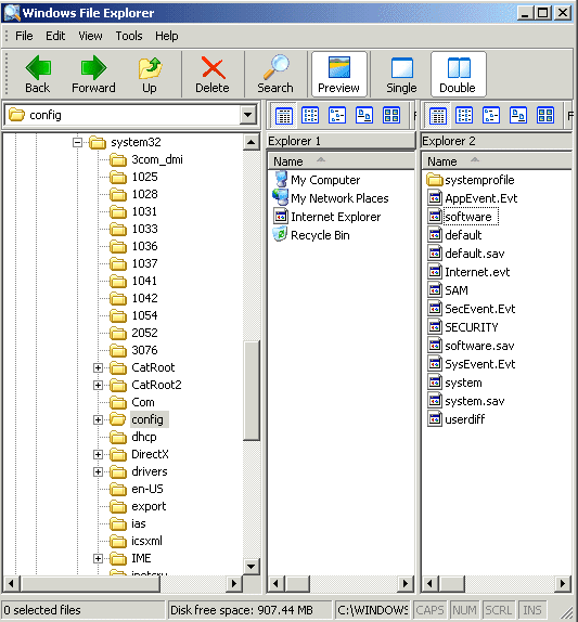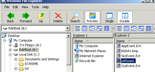 Regedit montre alors la base de registre du Windows de Bart-PE, ce qui n'est