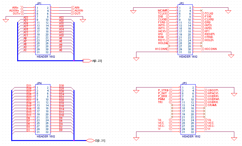 Les lignes d'adresses sont directement issues du DSP (A0-A16).