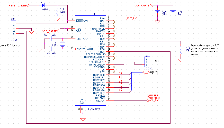 pullup d' 1k en plus sur le signal Reset du PIC (de MCLR/VPP, broche