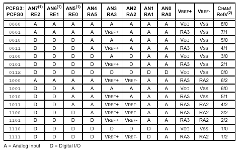 Seules les configs de ce tableau sont possibles- Un certain nombre des E/S analogiques ont d'autres fonctions voire des fonctions de référence (vref +, vref -)