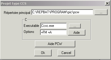 Le chemin principal qui est le répertoire de PCW.- Le nom de l'executable du compilateur (il s'agit de CCSC.exe)