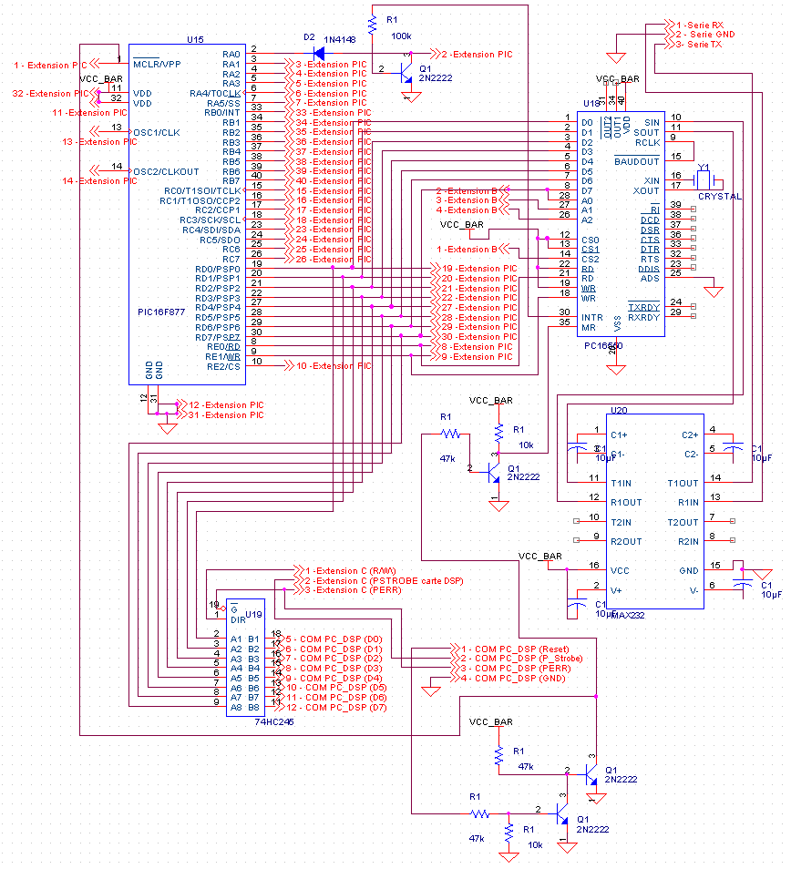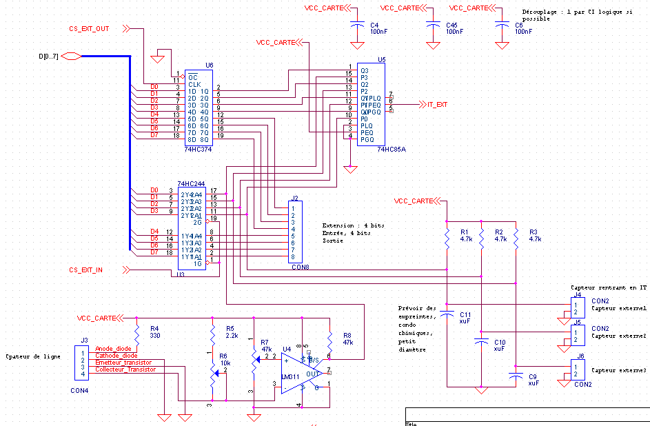 fait environ 7.2V. Le 7805 alimente la carte d'extension.