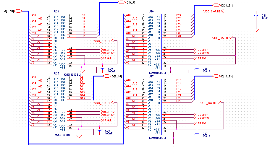 Les lignes d'adresses sont directement issues du DSP (A0-A16).