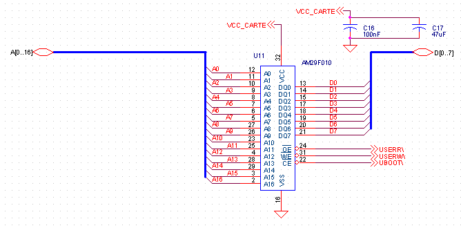 La Flash utilisée est une flash 8 bits. L'architecture est