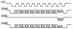 Ecriture par le maître Lorsqu'il s'agit d'un READ, le maître va, après avoir écrit l'adresse, générer l'horloge sans rien imposer sur SDA. C'est l'esclave qui va fournir la donnée.